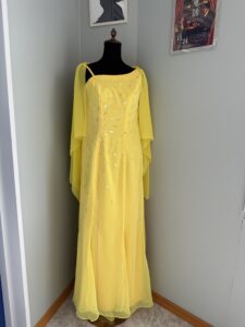黒留袖の着物リメイク 2025-03-03 post お母様から譲り受けた 黒留袖をドレスにリメイクしました お嬢様の結婚式で着用のために 今回のリメイクに踏み切りました 着物の裾に広がる柄を 一枚の絵のように繋げて ドレスの裾に施しました パネルラインで袖は7部袖に 家紋も残しました 一枚の絵のような裾の柄でした